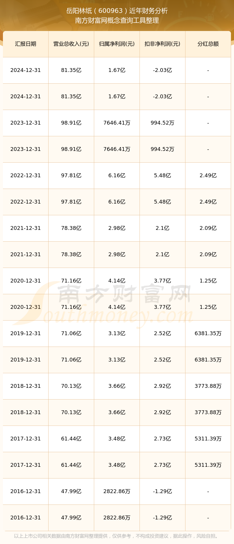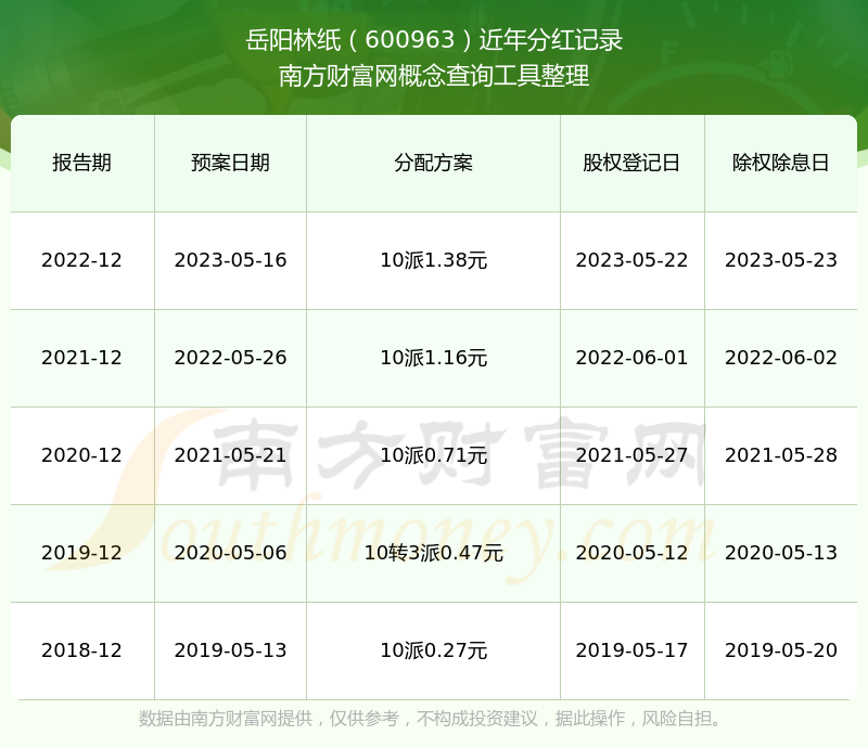 近年岳陽林紙分紅派息情況如下表所示: