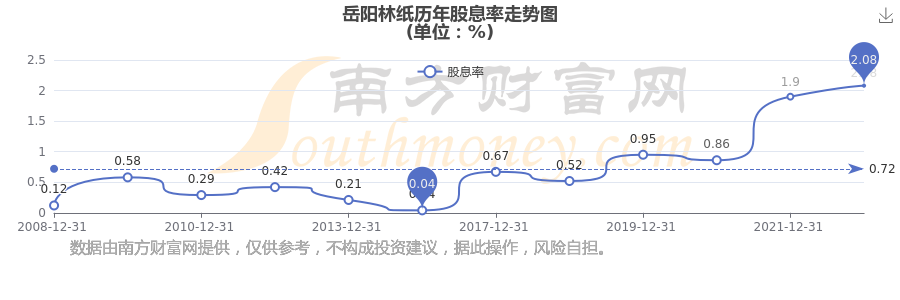 岳陽林紙歷年股息率走勢(shì)如下圖: