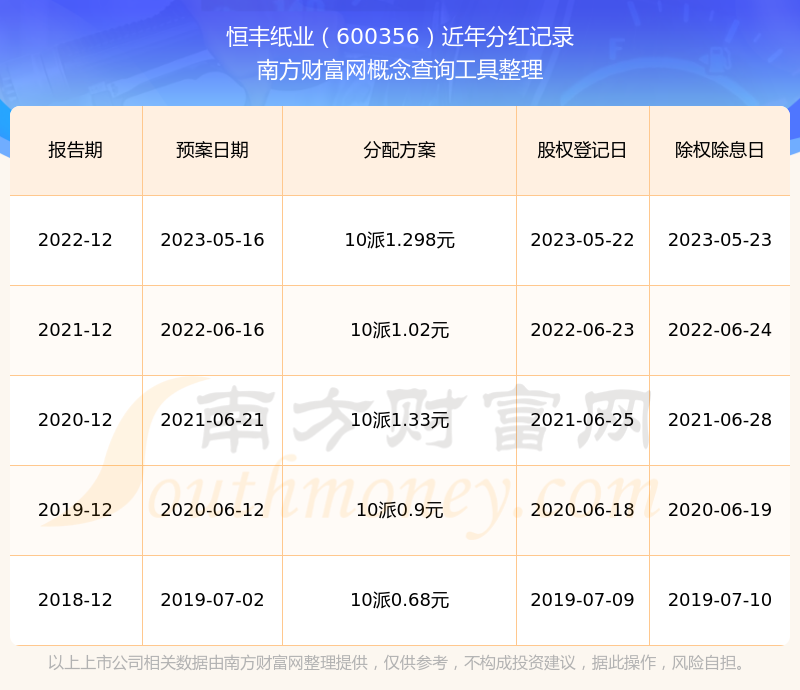 恒豐紙業(yè)最新一次公布的分紅方案:10派1.298元。