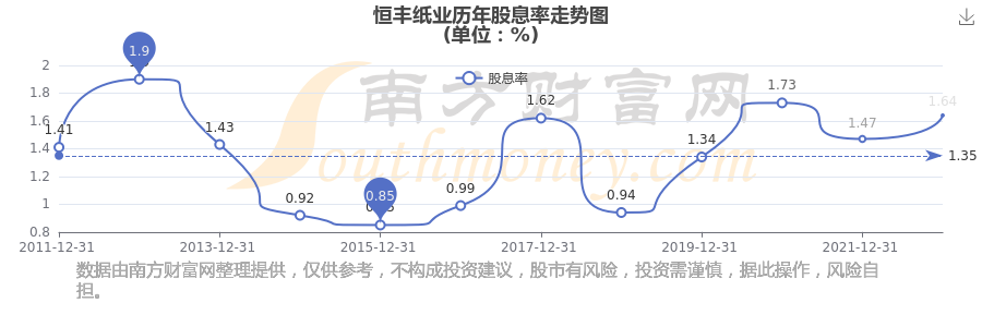 近年恒豐紙業(yè)年度股息率走勢(shì)如下圖: