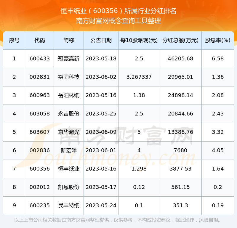 二、恒豐紙業(yè)600356行業(yè)分紅排名