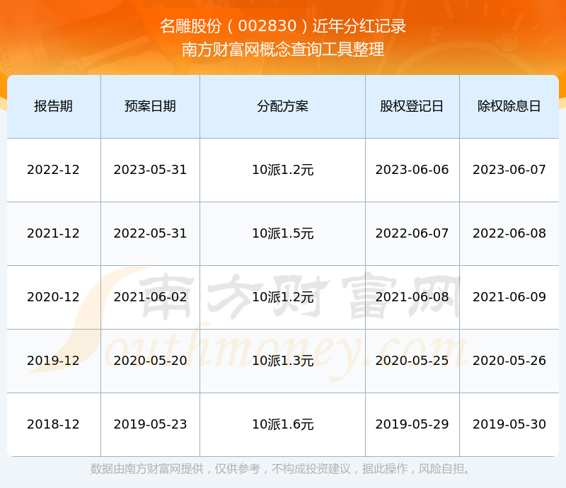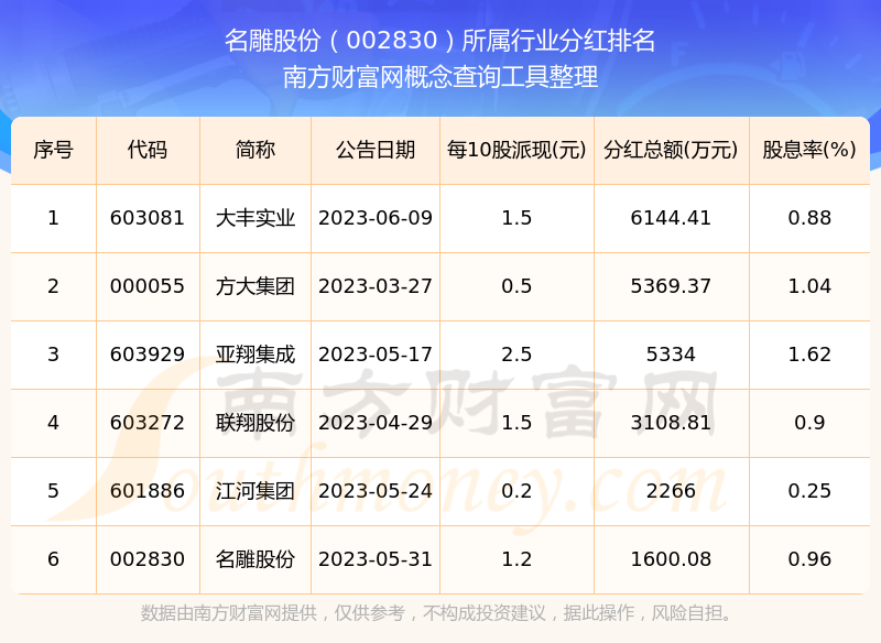 二、名雕股份002830行業(yè)分紅排名