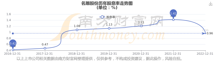 近年名雕股份年度股息率走勢如下圖: