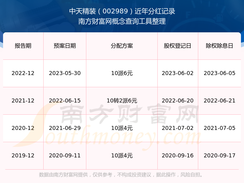 中天精裝最新一次公布的分紅方案:10派6元。