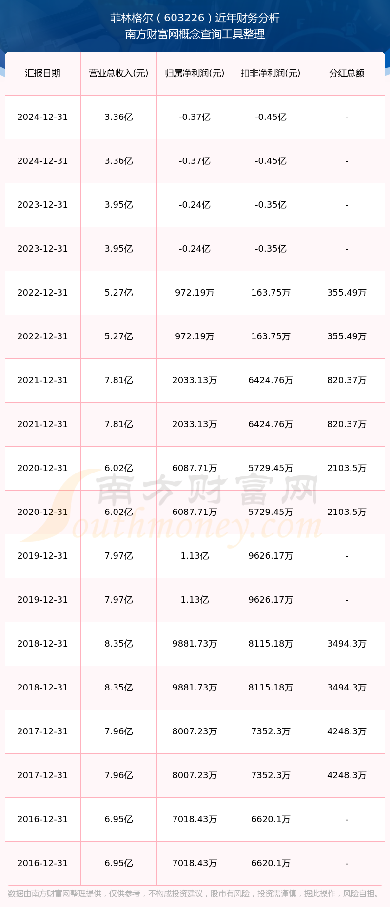 菲林格爾最新一次公布的分紅方案為10派0.1元。本次權(quán)益分派股權(quán)登記日為2023年6月6日,除權(quán)除息日為2023年6月7日,派息日為2023年6月7日。
