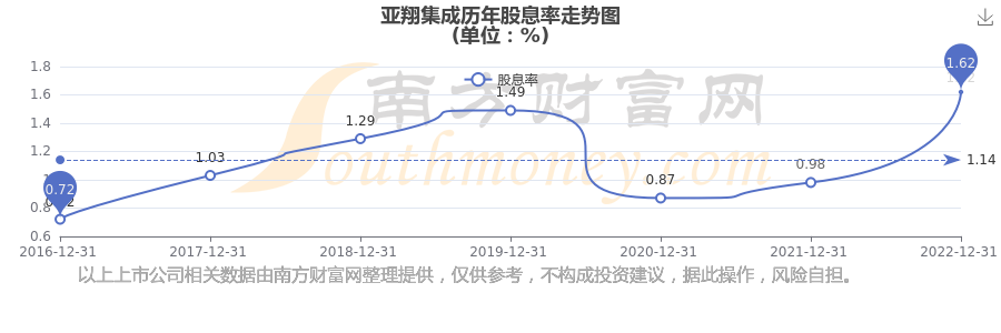 近年亞翔集成年度股息率走勢如下圖: