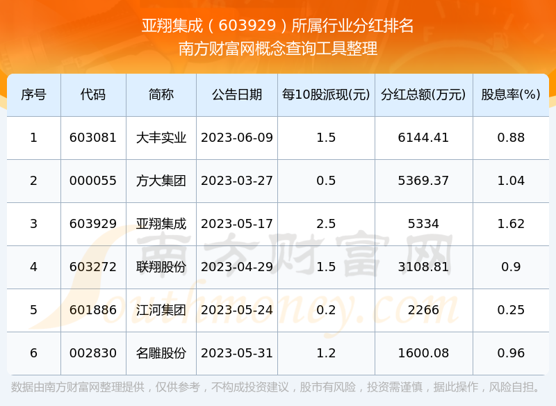 二、亞翔集成603929行業(yè)分紅排名